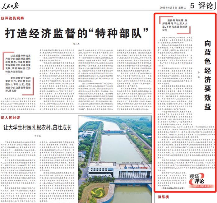 海洋孕育了生命、聯通了世界、促進了發展。新時代新征程,堅持陸海統籌,做好經略海洋這篇大文章,不斷拓展藍色經濟空間,必能以海洋經濟帶動提升陸域經濟,書寫新的發展故事。