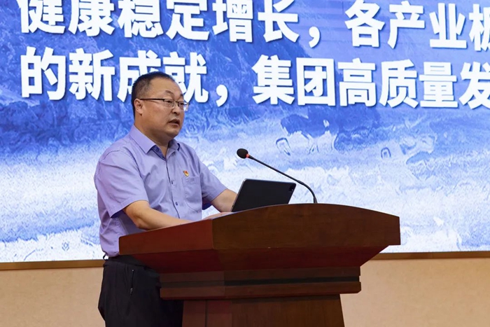 會議伊始,與會人員首先觀看了2023年《凝聚非凡偉力,堅守初心前行》半年總結(jié)主題視頻,之后,集團(tuán)總裁劉兆志對2023年上半年經(jīng)營情況作了全面總結(jié)。