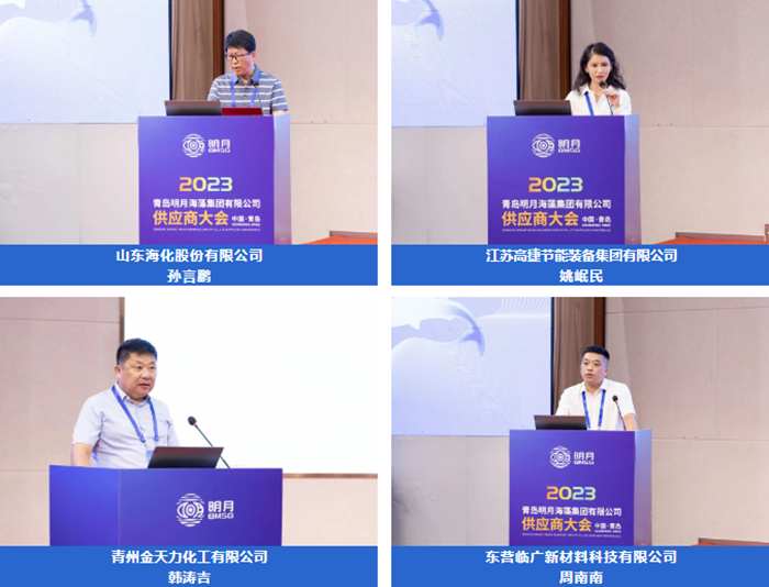 山東海化股份有限公司孫言鵬、江蘇高捷節(jié)能裝備集團(tuán)有限公司姚岷民、青州金天力化工有限公司韓濤吉、東營臨廣新材料科技有限公司周南南幾位供應(yīng)商代表上臺(tái)分享“他們和明月的故事”。通過他們的講述,讓大家全方位、多角度地了解了一個(gè)充滿情懷與溫度的多彩明月。