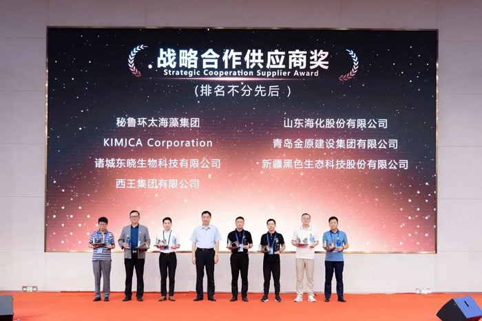 青島明月海藻集團(tuán)黨委書記、董事局主席張國防為“戰(zhàn)略合作供應(yīng)商獎(jiǎng)”獲獎(jiǎng)?wù)哳C獎(jiǎng)