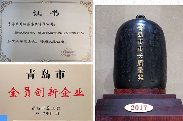 質量興企,質量強企。經過持之以恒的奮斗和努力,明月海藻集團榮獲國家制造業單項冠軍企業、山東省農產品加工示范企業、青島市市長質量獎、青島市全員創新企業等多項榮譽,企業邁向了高質量發展之路。
