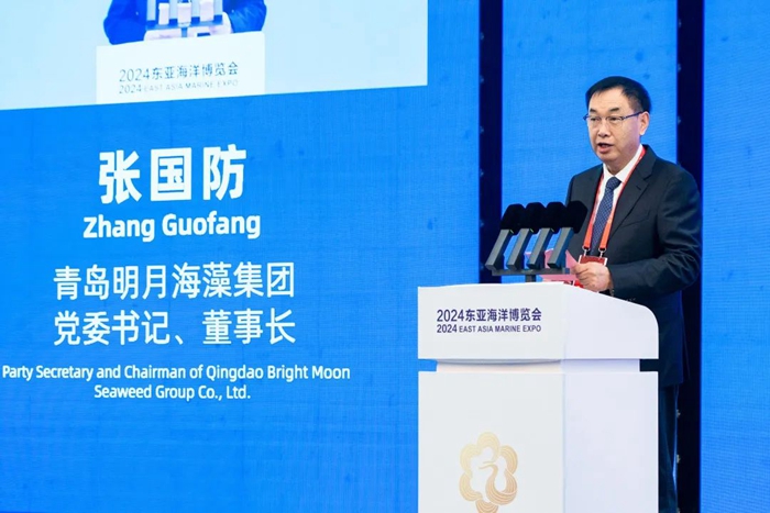 在開幕儀式上,青島明月海藻集團黨委書記、董事長張國防先生作為參展代表發表了熱情洋溢的講話。他表示,明月將繼續秉承“利用海洋資源,守護人類健康”的初心使命,積極響應國家海洋強國戰略,不斷加大科技創新力度,為全球海洋健康事業做出更大的貢獻。