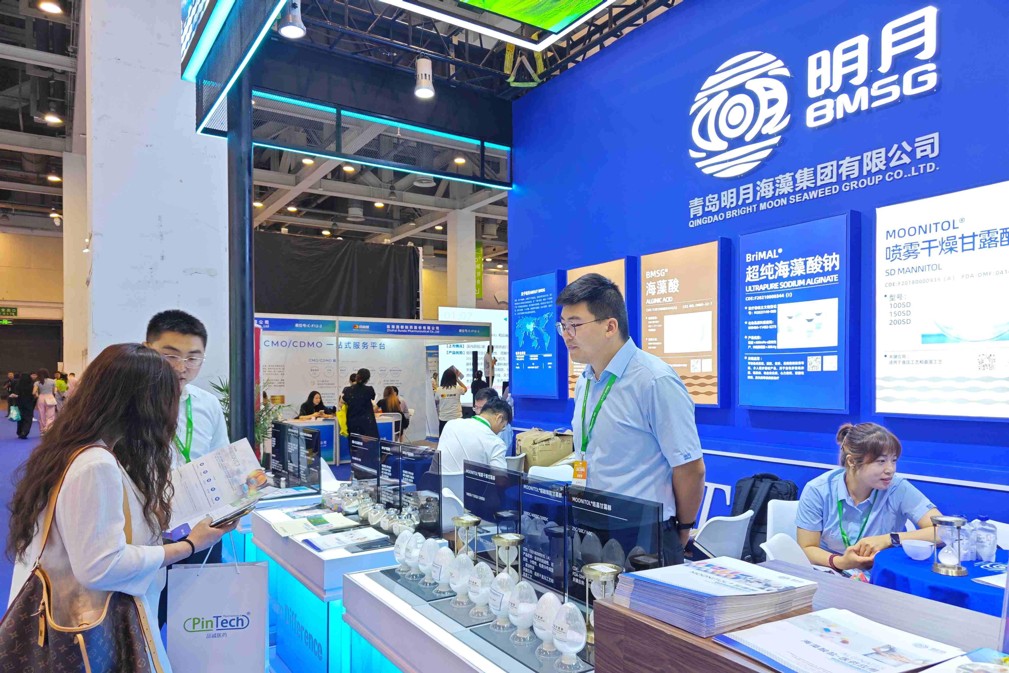 作為全球“海藻+健康”解決方案的領導者,明月攜多款核心產(chǎn)品精彩亮相,包括海藻酸鈉、海藻酸、甘露醇、山梨醇、超純海藻酸鈉等,展示了源自海洋的創(chuàng)新力量如何助力醫(yī)藥行業(yè)的可持續(xù)升級。展位現(xiàn)場,明月專業(yè)的銷售與研發(fā)團隊與眾多客戶深入交流,獲得廣泛關注與合作意向。