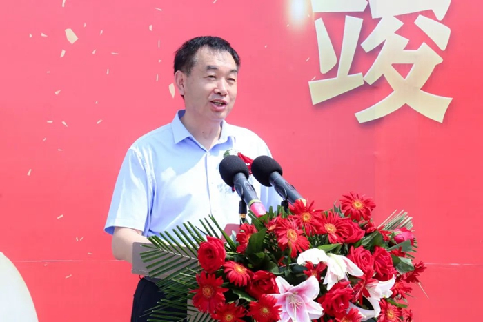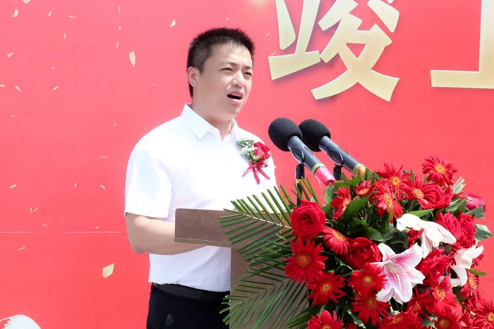 江蘇省大豐港區(qū)委常委、大豐港經濟開發(fā)區(qū)黨工委書記、管委會主任黃同城,青島明月海藻集團董事局主席張國防,青島明月安欣營養(yǎng)科技有限公司總經理杜可振出席儀式并致辭。